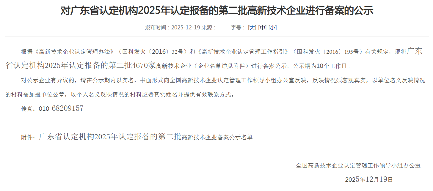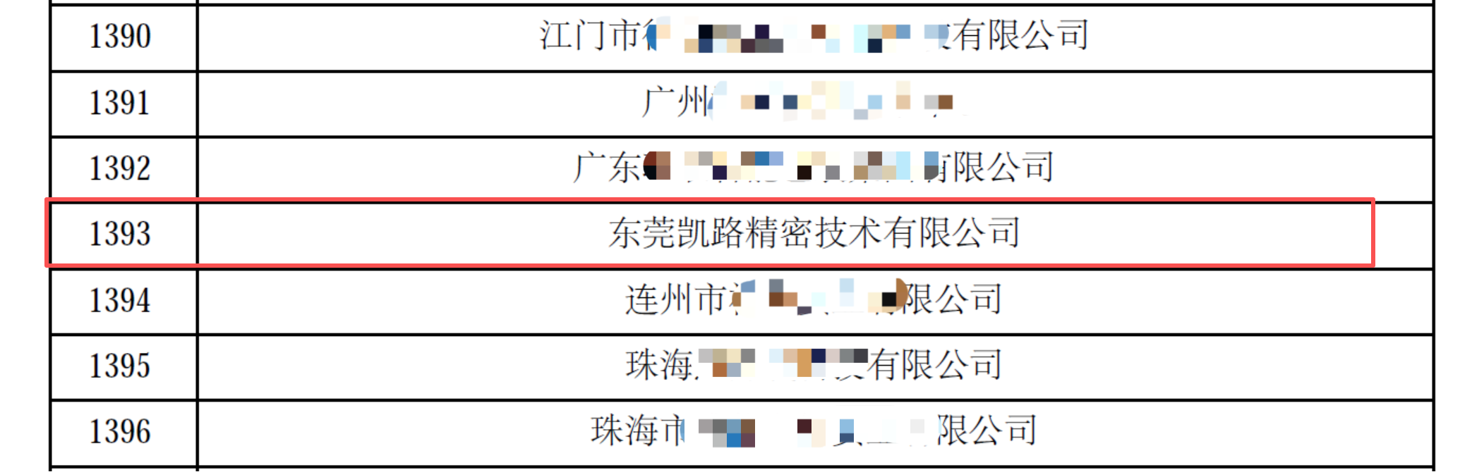 精工筑梦,创新致远。近日,根据全国高新技术企业认定管理工作领导小组办公室发布的《对广东省认定机构2025年认定报备的第二批高新技术企业进行备案的公示》,东莞凯路精密技术有限公司(以下简称“凯路精密”)再度荣耀上榜,成功通过国家高新技术企业资质复核。这是公司自首次认定以来,第三次获此国家级科技创新殊荣,标志着公司的科研创新能力、成果转化能力与可持续发展能力得到了国家权威部门的持续认可与肯定,企业科技创新体系迈上了系统化、规范化发展的新台阶。