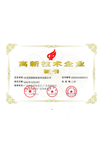 东莞凯路精密技术有限公司首次通过国家高新技术企业认定